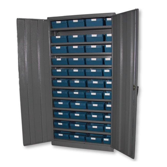 | Whats in the box | Steel Cabinet – 11 x Small Blue Bins (400 mm) and 33 x Large Blue Bins (400 mm) |