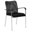 Padded visitor chair made with black bonded leather. Chrome sleighbase, chrome arms with leather cover.