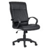 Visitor chair made from black bonded leather. Black sleigh base, flexi PU arms.